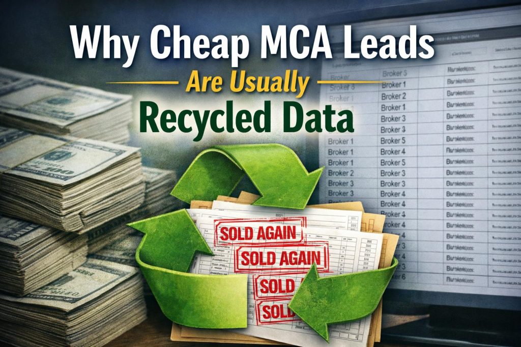 Sometimes the same data file gets sold five times, ten times, or even more. This turns the business from lead generation into data trading. In the short term, this model can make money because the data is very cheap to acquire. However, over time, it creates problems for everyone involved. Brokers end up calling merchants who have already been called many times, contact rates drop, merchants get frustrated, and brokers start to believe that all MCA leads are bad when, in reality, they are just being sold heavily recycled data.